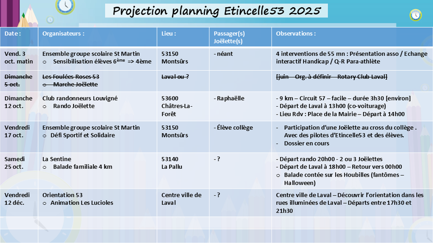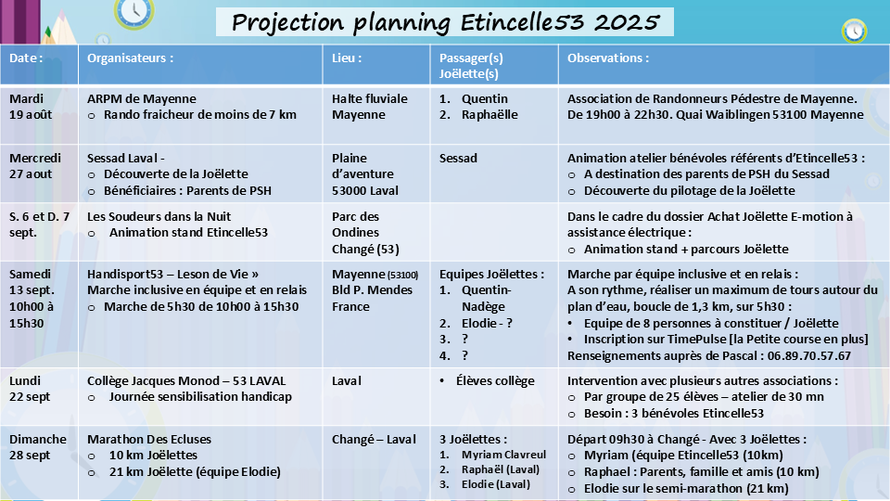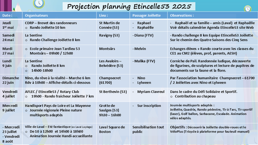 2/ Sur le plan SPORTIF, Etincelle53, le Rotary Club Laval Ambroise Paré et la section de randonneurs de l'AFLEC de St Berthevin, co-organisent une balade familiale de 5 km avec Myriam dans la joëlette, prévue le :